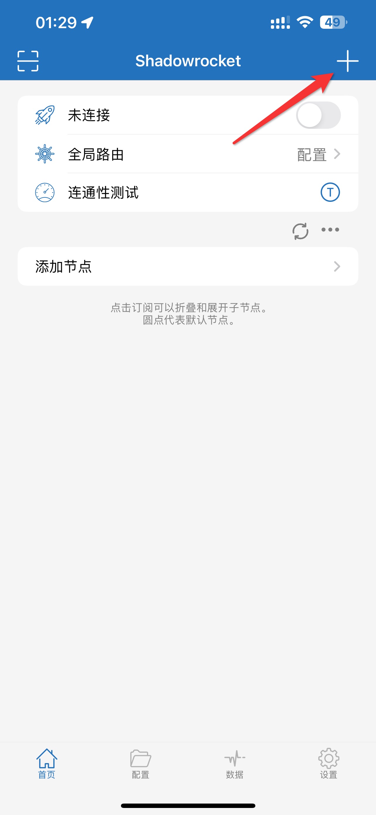 1. 打开小火箭,点击右上角加号添加代理ip